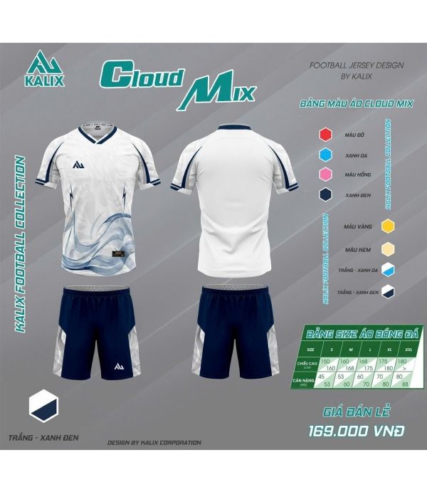 ÁO ĐÁ BANH KALIX CLOUD - TRẮNG XANH