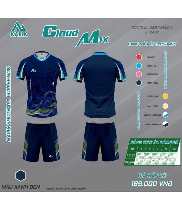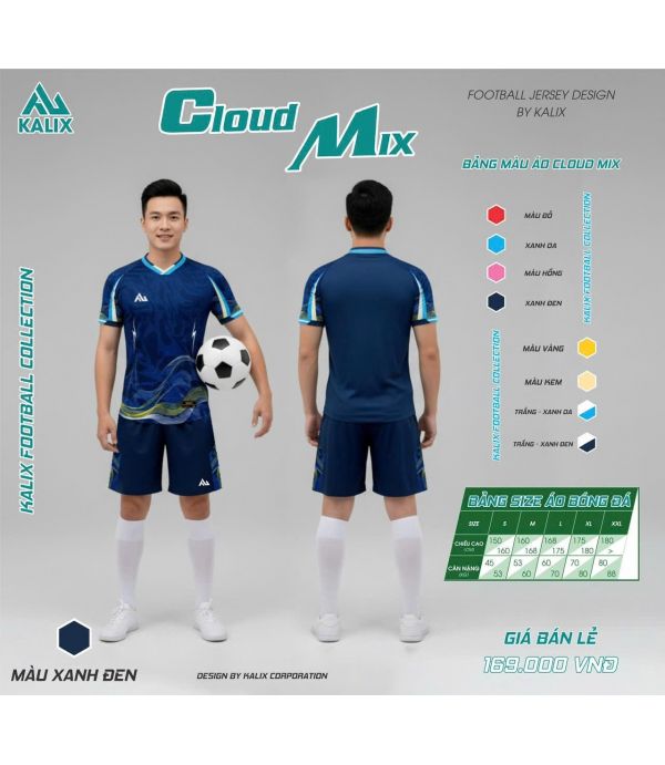 ÁO ĐÁ BANH KALIX CLOUD - XANH ĐEN