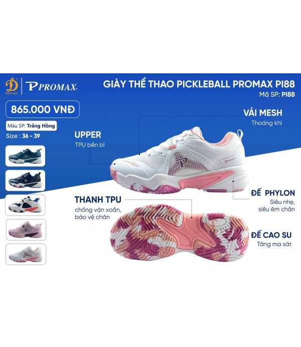 Giày Pickleball Nữ Promax PI88 - màu hồng xin xắn khó cưỡng