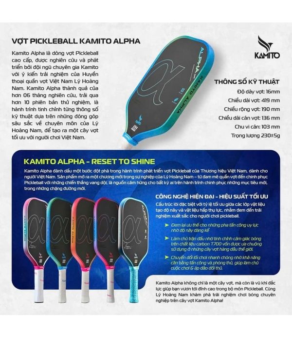 Nên shop giới thiệu khách chiếc vợt Hot những ngày gần đây của Kamito Alpha . Chiếc vợt đánh dấu sự trở lại của tay vợt tennis số 1 Việt Nam Lý Hoàng Nam đang là đại sứ thương hiệu
